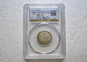 日本大正十二年公博MS61五十钱银币