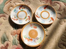 五六十年代,手绘金鱼瓷盘三件,纯手工彩绘,画工精细,自然老旧感,包老保真。盘面有正常使用痕迹,全品无瑕疵,收藏摆设使用佳品。直径13cm [玫瑰][玫瑰]