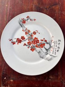 1967年手绘梅花诗词醴陵瓷盘(直径13cm)