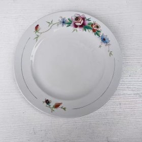 五十年代景德镇瓷盘老式餐饮汤盘手绘一枝花高档精美盘老瓷器