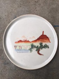 手绘山水红塔山老瓷盘 题材少品相完美!包老完整少见!红藏极品!