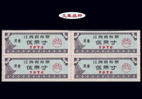 江西1976年《奖售布票--五市寸》四方联:品相漂亮。后面干净(35-36)。