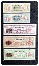 江西省奖售布票1965.9~1966.12全5枚~叁市尺背已写用