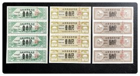 江西省奖售布票1966.9~1967.12壹市尺、叁市尺、伍市尺四连枚各1张,共12枚