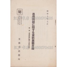 《(秘)思想问题に关する资料展观目录 -附录 思想问题に关する参考资料- 昭和9年7月》1部册;(秘)思想問題に関する資料展観目録 -附録 思想問題に関する参考資料- 昭和9年7月)
