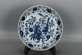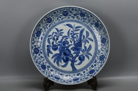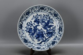 明宣德青花缠枝莲花鸟盘子一个
