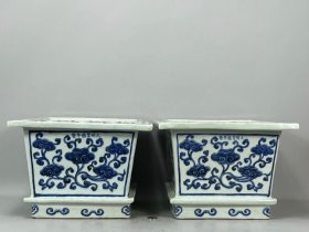 明宣德青花四方缠枝莲花尊一对