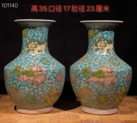 五彩赏瓶,手绘狮子缠枝莲花