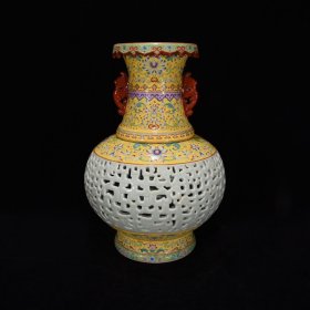 清乾隆缠枝莲花镂空转心瓶