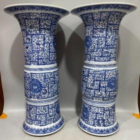 清青花手绘缠枝莲花觚瓶