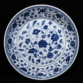 明宣德青花缠枝莲花纹盘子