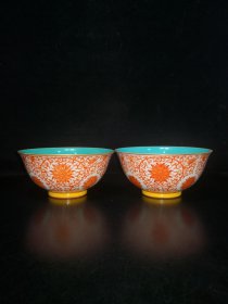官窑梵红缠枝莲花纹碗一对