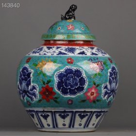 元代青花掐丝 缠枝莲花盖罐