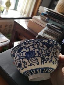 明永乐青花描金缠枝莲花纹碗,