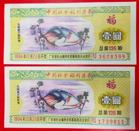 中国社会福利奖券:伍角1994年总第135期(2枚组)