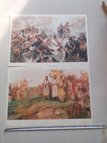 刘天呈、姚有多作二开年画中国历史教学图片《黄巾起义》《陈胜吴广起义》2张合售(上海人民出版社1977年1版2印,有毛病详见图片和介绍)