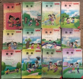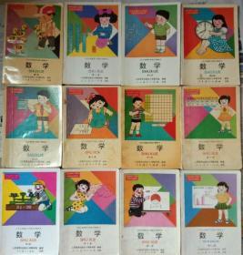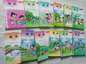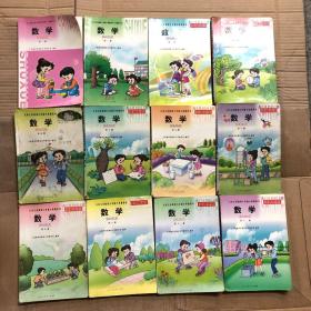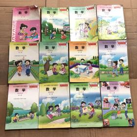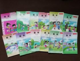 2000年后九年义务教育六年制小学教科书数学全1-12册,一二四3本彩色,第四册缺封底,其他册黑白插图,有笔迹