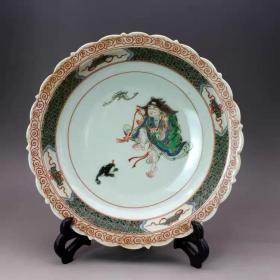 古彩粉彩人物刘海戏蟾盘