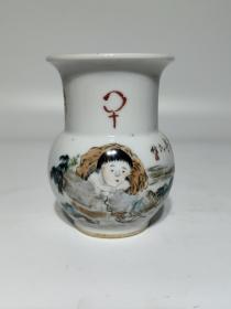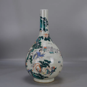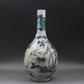清古彩刘海戏金蟾胆式瓶