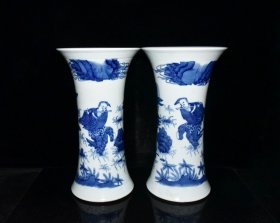 瓷器 清代青花刘海戏金蟾人物故事纹花觚一对【37.8x20.6cm】