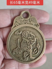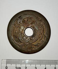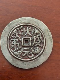 清代《状元及第》背面为刘海戏金蟾,尺寸五厘米、白铜朱砂渲染,品相还不错