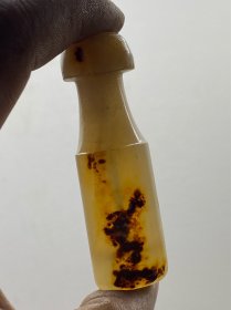 老玛瑙烟嘴、俏色在灯光下有点像刘海戏金蟾的图案、烟嘴个头还可以、口含底下有自然石纹、整体品相不错、品相如图包真包老不议价