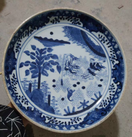 柴窑青花人物刘海戏金蟾盘
