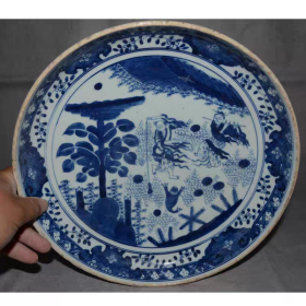 旧藏 清代青花刘海戏金蟾人物故事花【37.6x20.5cm】