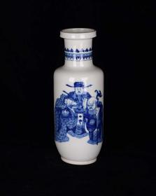 清康熙官窑青花福禄寿三星高照刘海戏蟾纹棒槌瓶