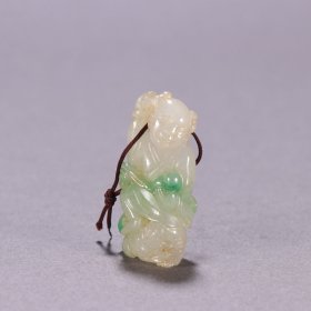 晚清 老翡翠刘海戏金蟾 仙鹤牌