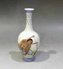 新粉彩刘海戏金蟾人物小瓶,