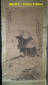 江苏桃花坞木版年画刘海戏金蟾,有裁剪,贴在纸板上