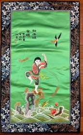 刘海戏金蟾 古董 绣片