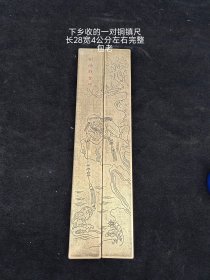 下乡收的一对铜镇尺"刘海戏金蟾"手工雕刻,品相完整,喜欢的朋友不要错过。