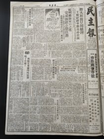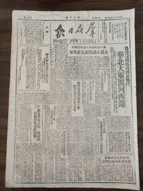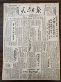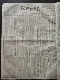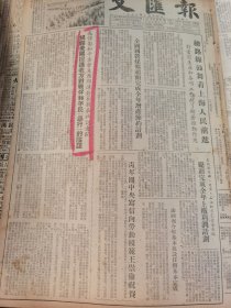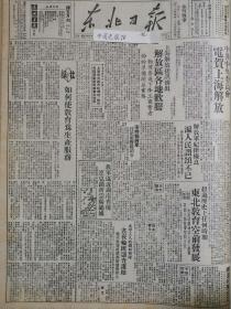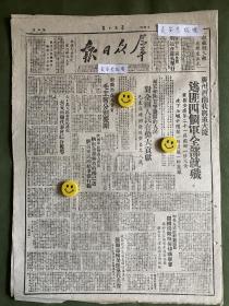 1949年(大众日报)6月1号,4开4版,祝贺上海解放;解放军逼近湖南边境,连克3城(粤汉,蒲圻,通城,解放军铁道兵团成立,杭州西安两市人民政府及淞沪警备司令部成立,