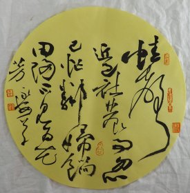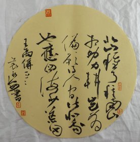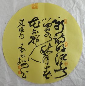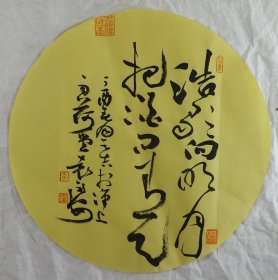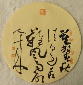 中国书法家协会会员 袁永安先生先生 一平尺团扇书法作品【孤云将野鹤1】作品直径约32.5厘米,作品折叠发货。