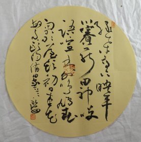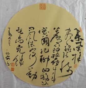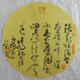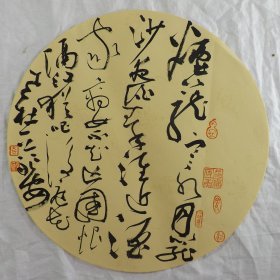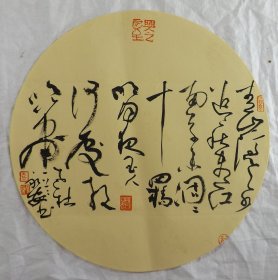 中国书法家协会会员 袁永安先生先生 一平尺团扇书法作品【篱外谁家不系船2】作品直径约32.5厘米,作品折叠发货。