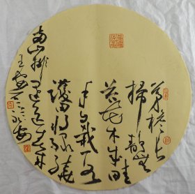 中国书法家协会会员 袁永安先生先生 一平尺团扇书法作品【南山尝种豆】作品直径约32.5厘米,作品折叠发货。