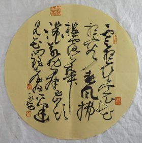 中国书法家协会会员 袁永安先生先生 一平尺团扇书法作品【孤云将野鹤】作品直径约32.5厘米,作品折叠发货。