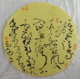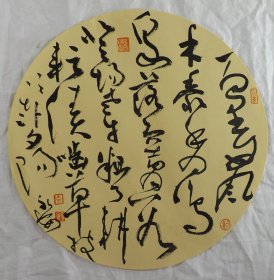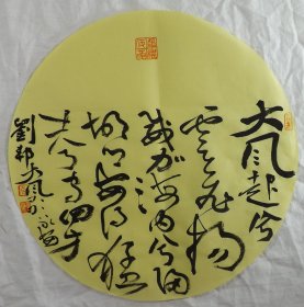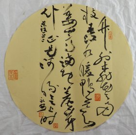中国书法家协会会员 袁永安先生先生 一平尺团扇书法作品【大风歌1】作品直径约32.5厘米,作品折叠发货。