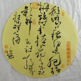 中国书法家协会会员 袁永安先生先生 一平尺团扇书法作品【新韵好酒无留客】作品直径约32.5厘米,作品折叠发货。