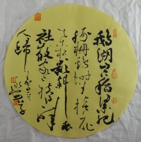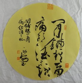 中国书法家协会会员 袁永安先生先生 一平尺团扇书法作品【莫放春秋佳日过1】作品直径约32.5厘米,作品折叠发货。