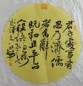 中国书法家协会会员 袁永安先生先生 一平尺团扇书法作品【君子处世者】作品直径约32.5厘米,作品折叠发货。