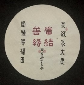中国书法家协会会员 田生云先生 书法团扇作品【广结善缘】作品直径约49.5厘米,这件作品带合影,画心折叠发货。
