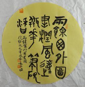 中国书法家协会会员 袁永安先生先生 一平尺团扇书法作品【雨馀窗外图书润】作品直径约32.5厘米,作品折叠发货。