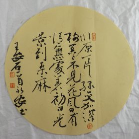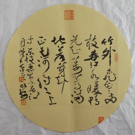 中国书法家协会会员 袁永安先生先生 一平尺团扇书法作品【竹外桃花三两枝1】作品直径约32.5厘米,作品折叠发货。