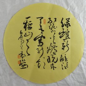 中国书法家协会会员 袁永安先生先生 一平尺团扇书法作品【川原一片绿交加】作品直径约32.5厘米,作品折叠发货。