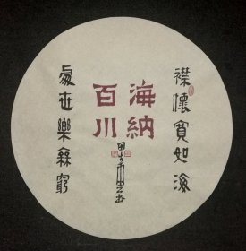 中国书法家协会会员 田生云先生 书法团扇作品【海纳百川】作品直径约49.5厘米,这件作品带合影,画心折叠发货。