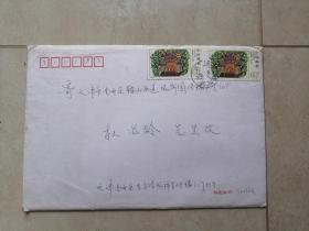 2000.12.实寄封一件;贴2000-11【8-3】60分邮票二枚。内贺年片一枚、画家蔡金顺,给著名画家杜滋龄、16开信函一页、铅笔画稿一张。【见图】