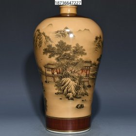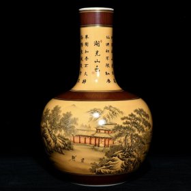 清乾隆黄地墨彩山水纹天球瓶 高32cm直径20.5cm 价格3500